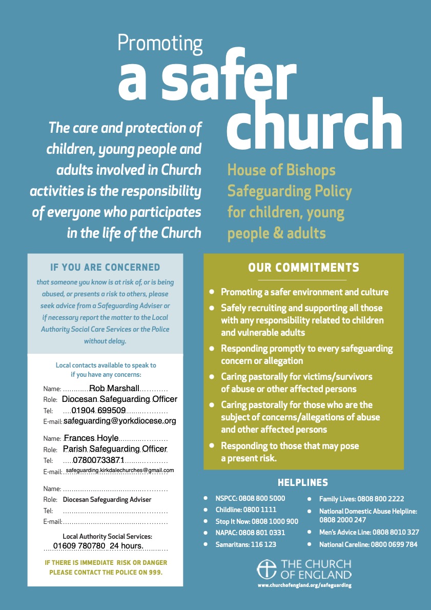 Kirkdale Benefice has a current safeguarding policy which is adopted annually by each individual Church Council.